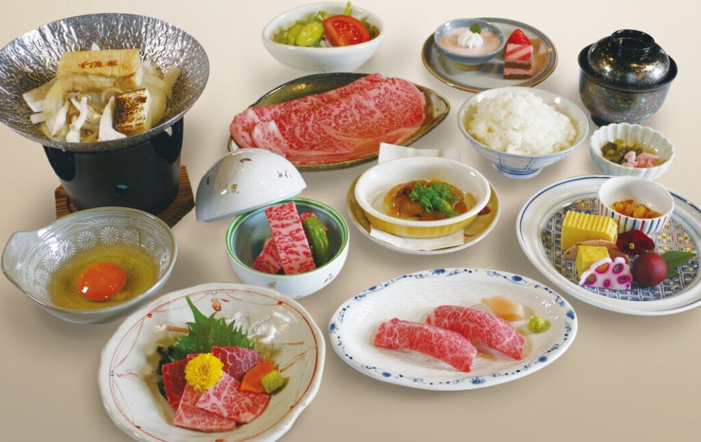 前菜・近江牛刺身・ご飯又はうどん・デザート